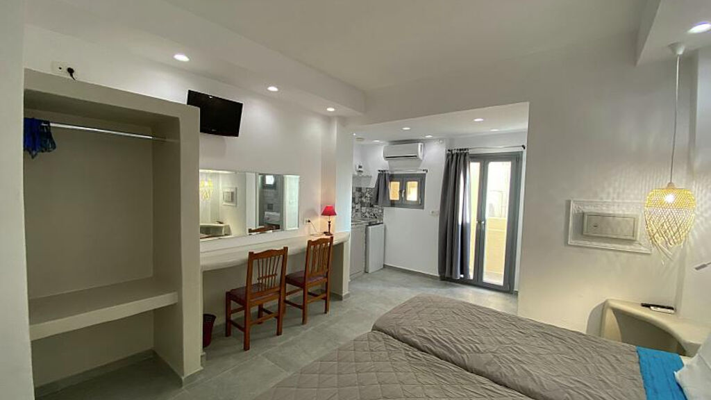 Základní informace: Malý rodinný hotel, skládající se pouze s 16 pokojů, se nachází nedaleko letoviska Perissa, cca 400 metrů od písečné pláže s hrubým vulkanickým pískem. V pokojích nabízí je klienty k dispozici kuchyňský kout a mohou tak využít možnost vlastního stravování. Restaurace, obchůdky a bary jsou od hotelu vzdáleny 350 metrů.Upozornění: Rozsah a kvalita uvedených služeb a aktivit může být ovlivněna zavedením případných hygienických či protiepidemických opatření v dané destinaci.