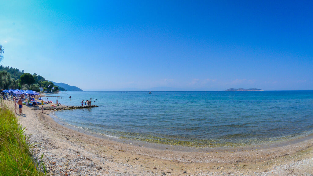 Veřejná písčito - oblázková pláž se nachází cca 50 m od hotelu. Lehátka a slunečníky jsou k dispozici na pláži za poplatek.