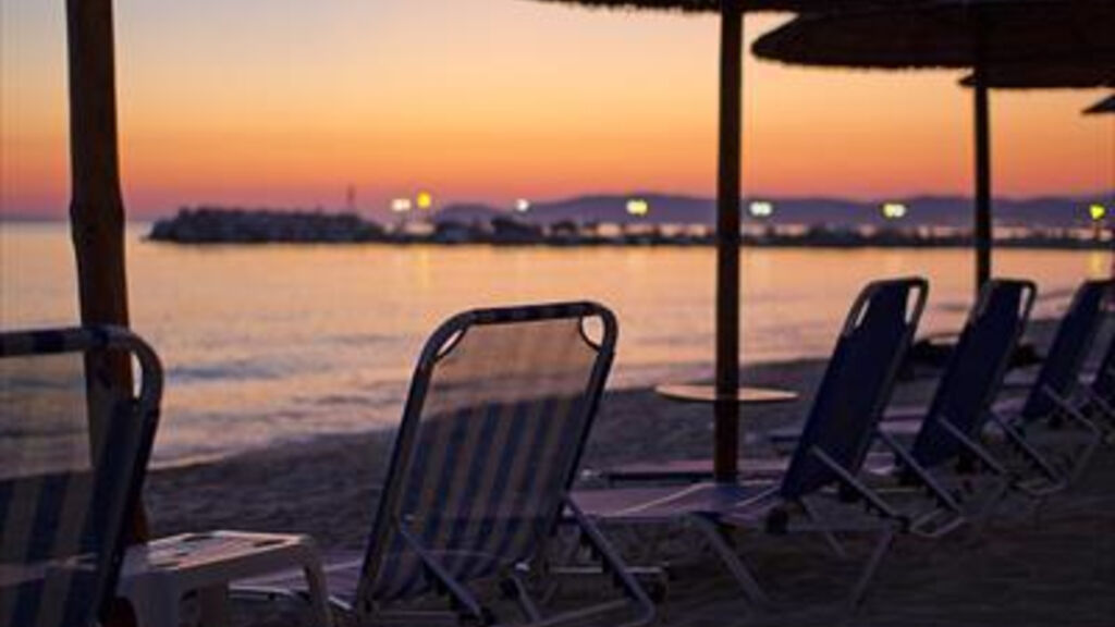 100 m vzdálenost od písečné pláže s pozvolným vstupem do moře, lehátka a slunečníky za poplatek, vodní sporty za poplatek