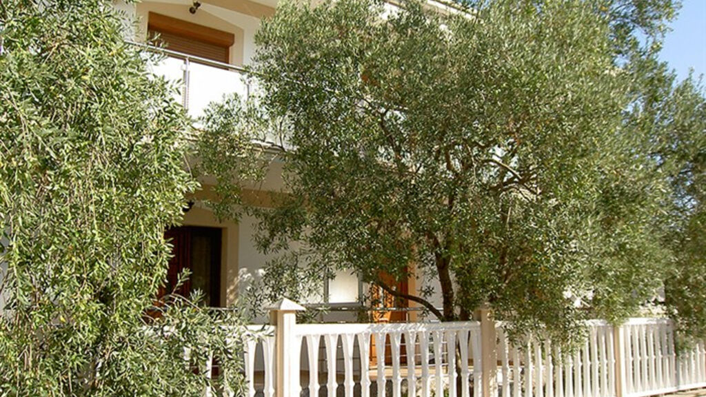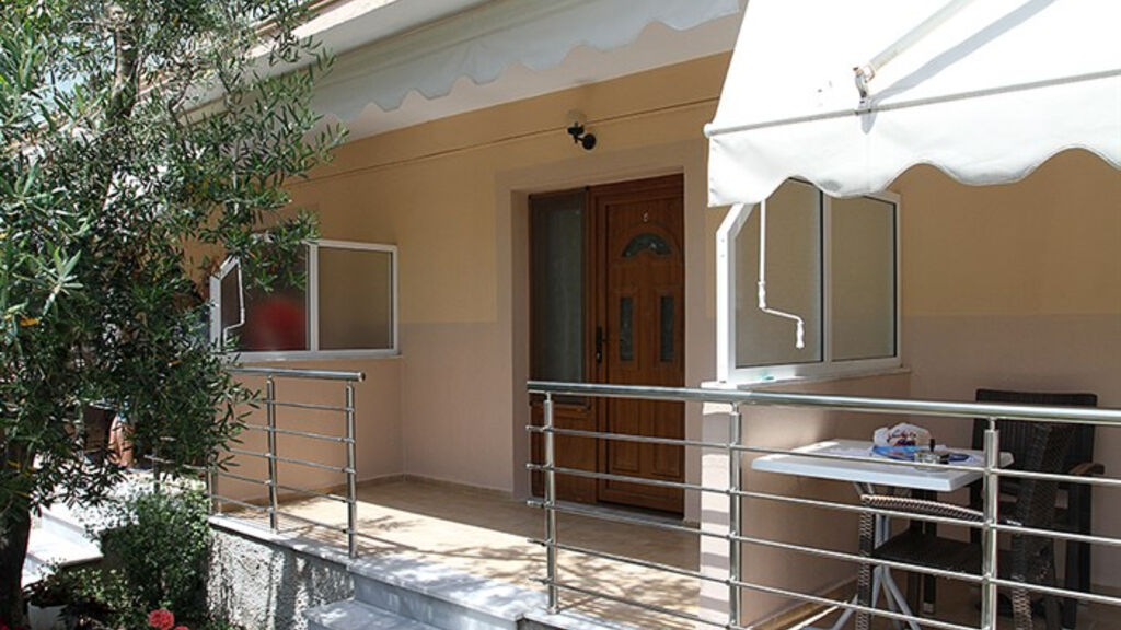 Velmi pěkná jednopatrová vilka stojí v krásné subtropické zahradě. Hlavní předností tohoto domu je klidná poloha přímo na břehu moře u písečné pláže (místy s oblázky). Vzdálenost od centra městečka Potos je 500 m, kde naleznete pobřežní promenádu s malými uličkami plných obchodů, restaurací a barů. Jedná se o velmi žádané ubytování, které bývá často brzy vyprodané kvůli své lokalitě a nádhernému okolí. Vhodné pro rodiny s dětmi i pro páry.