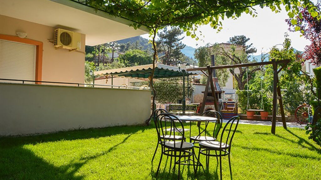 Nová třípodlažní studia Vergina se nachází na jižní straně letoviska Skala Potamias. Písečná pláž je vzdálena 150 m. Do centra letoviska dojdete po 150 m, kde naleznete řadu restaurací, typických řeckých taveren, barů a nočních klubů. V ubytování můžete využít zahradu, kde je možnost si něco ugrilovat, dále zde naleznete dětské hřiště pro vaše ratolesti. Toto ubytování je vhodné pro rodiny s dětmi.