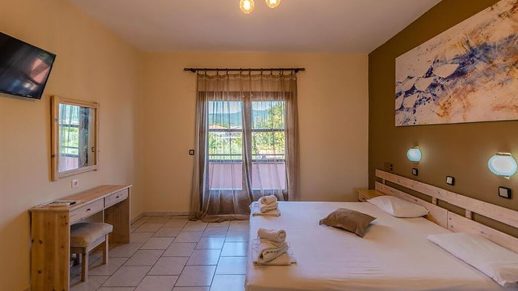 Rodinný hotel Natasa obklopený olivovými háji se nachází v malebné zahradě poblíž oblíbené pláže Golden Beach a městečka Skala Potamia. Pláž je vzdálena 800 m a je od hotelu zajišťována 3× denně kyvadlovou dopravou. Nedaleko se nachází také vesnička Panagia, která je známá místním pravoslavným kostelem, muzeem a prodejnou olivového oleje Sotirelis. Ubytování je vybaveno bazénem, sluneční terasou, dětským hřištěm a barem u bazénu. Renovované pokoje zahrnují klimatizaci, koupelnu s toaletou, satelitní televizi a balkon nebo terasu. Doporučujeme rodinám s dětmi a klientům všech věkových kategorií.