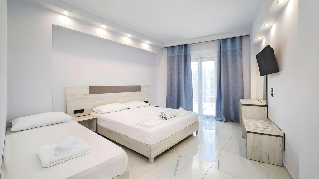 Poloha hotelu:V centru velmi oblíbeného menšího letoviska Agios Sostis, v blízkosti obchody, typické řecké taverny a bary. Rušné centrum Laganas vzdáleno cca 30 minut chůze příjemnou procházkou. Hlavní město Zakynthos 12 km, letiště 10 km.