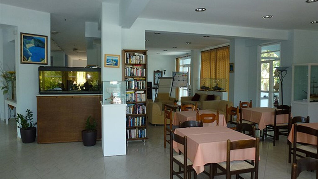 Menší rodinný hotel, postavený v tradičním řeckém stylu, se nachází v těsné blízkosti dlouhé písečné pláže s pozvolným vstupem do vody. Pláž je od hotelu oddělena klidnou pobřežní komunikací. Zahrada hotelu a terasa nabízí nádherný výhled na zátoku Alykanas a přilehlé ostrovy. Centrum letoviska je vzdáleno 5 minut chůze a naleznete zde bary, restaurace, taverny i supermarkety. Poloha hotelu je velmi výhodná k podnikání výletů: letovisko Alykes 1,5 km, město Zakynthos 16 km, Laganas 22 km.