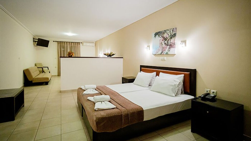 Základní informace:Rodinný hotel, ležící přímo vedle písečno-oblázkové pláže s pozvolným vstupem do moře. Před hotelem se nachází autobusová zastávka a v okolí, přibližně 200 metrů, se nachází množství tradičních řeckých taveren a nákupních možností. Hotel je situován v klidnějším prostředí, mezi horami a čirým mořem, je vhodný jak pro páry, tak pro rodiny s dětmi.