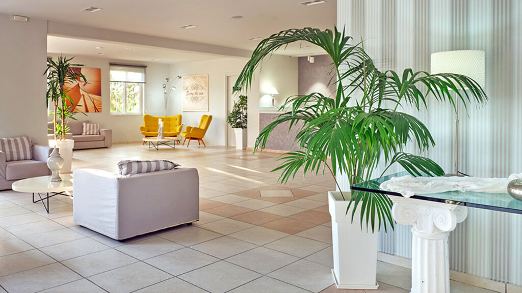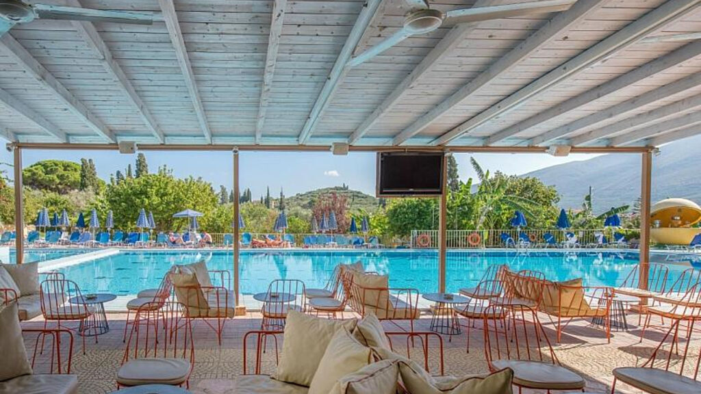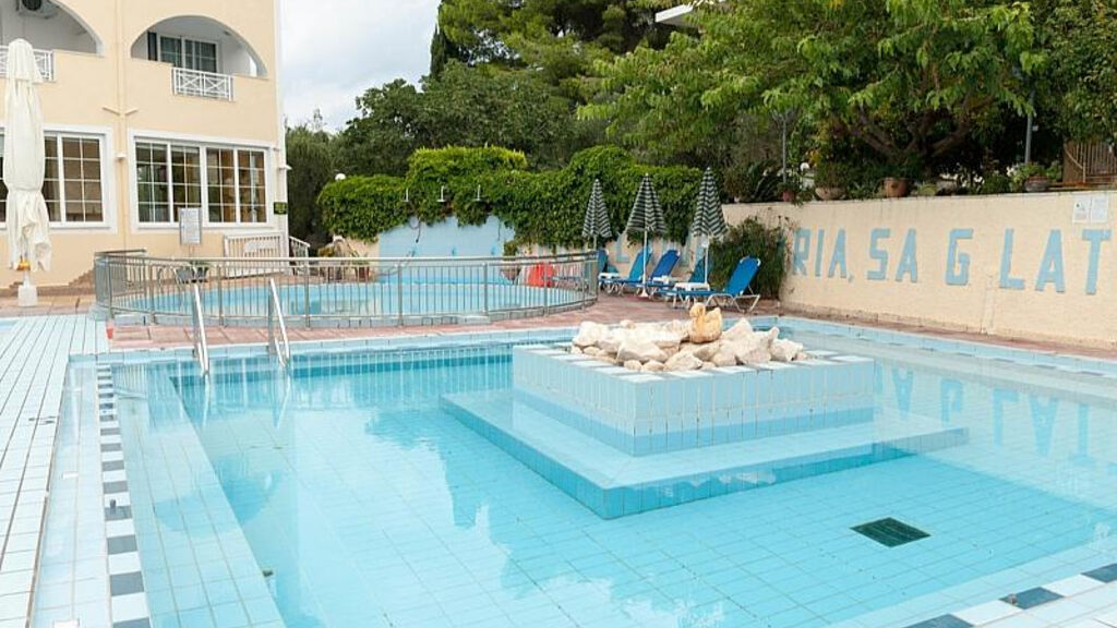 3 budovy, vstupní hala s recepcí, restaurace. Venku bazén, bar u bazénu, snack bar, terasa s lehátky a slunečníky zdarma.