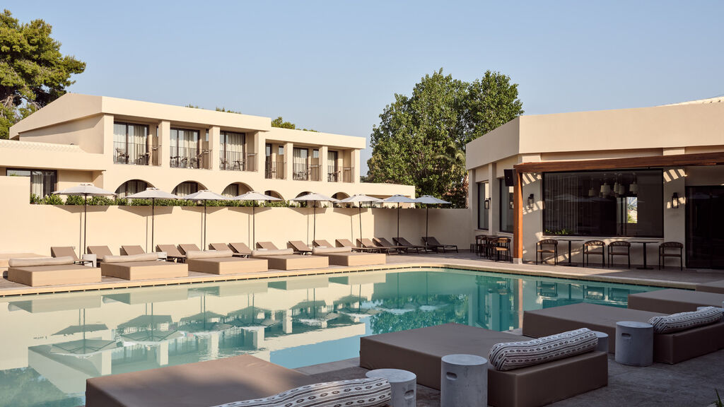 96 pokojů, recepce, restaurace a lobby bar. Venku bazén, terasa s lehátky a slunečníky zdarma, snack bar.