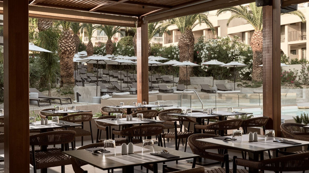 96 pokojů, recepce, restaurace a lobby bar. Venku bazén, snack bar, terasa s lehátky a slunečníky zdarma.