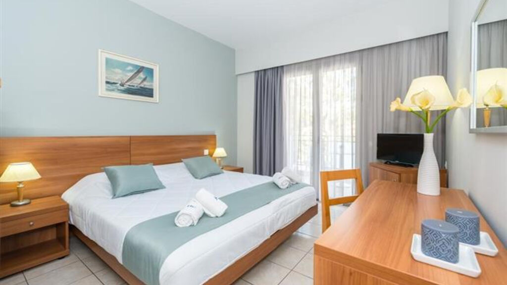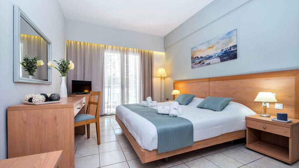 Všechny pokoje jsou vybaveny koupelnou se sprchou, WC, klimatizací (jen během července a srpna, mimo tyto měsíce je klimatizace za poplatek cca 4€/den/pokoj), telefonem, fénem, TV se satelitním příjmem a balkónem nebo terasou s výhledem na bazén, zahradu nebo letovisko. Chladnička (za poplatek cca 3€/den), trezor na pokoji (za poplatek cca 15€/týden). Dětská postýlka na vyžádání zdarma.