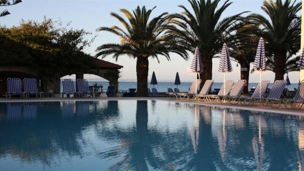 Příjemný hotel, obklopený spoustou palem a zeleně, se nachází přímo na písečné pláži oblíbeného letoviska Argassi (Řecko, Zakynthos). Nejbližší obchody, taverny a bary naleznete jen 100 m od hotelu, do hlavního města vzdáleného 3 km se pohodlně dostanete místním autobusem. Hotel nabízí vstupní halu s recepcí (Wi‑Fi a internet za poplatek), restauraci, snack bar, TV místnost, knihovnu, venkovní bazén a dětský bazén, kde jsou lehátka a slunečníky zdarma (na pláži za poplatek). Za poplatek je možné zahrát si kulečník či využít široké nabídky vodních sportů na pláži. Kvalitní služby hotelu, blízkost živého letoviska a krátký transfer z letiště zaručují strávení nezapomenutelné dovolené jak párům, tak rodinám s dětmi.