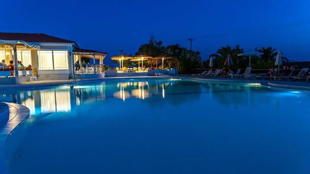 Poloha hotelu:Hotel obklopený zelení, situován v klidné poloze, cca 500 m od centra letoviska Kalamaki s bary, tavernami a obchody. Živé letovisko Laganas je vzdáleno cca 5 km, hlavní město Zakynthos cca 7 km (spojení linkovým autobusem).