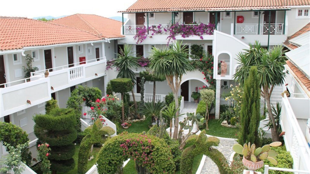 - příjemný menší hotel zasazený v krásné zahradě - přátelské prostředí - v oblíbeném letovisku Kalamaki, kde na zdejších plážích hnízdí chráněné mořské želvy