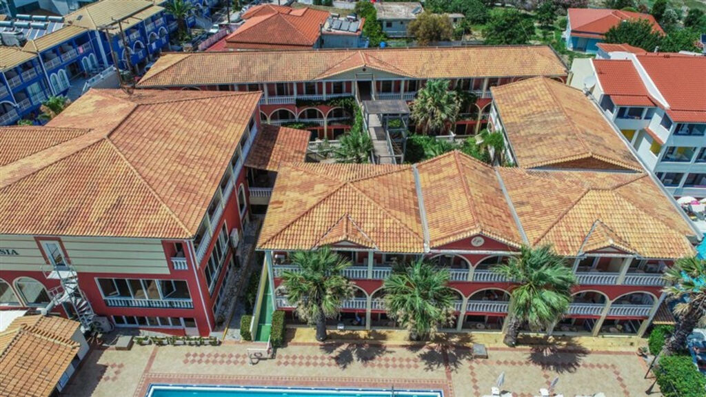 Základní informace:Příjemný hotel v tradičním řeckém stylu je situován přímo na vyhlášené pláži Laganas. Hotel disponuje prostornou terasou s výhledem na moře, velkým bazénem a krásnou zahradou umístěnou přímo mezi hotelovými budovami, jež jsou propojeny můstkem. Hotel doporučujeme klientům, kteří preferují klidnější formu ubytování a taktéž rodinám s dětmi.