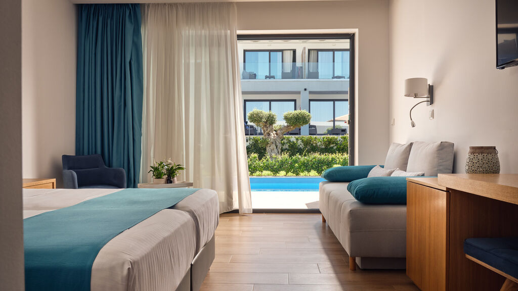 - Junior Suita, Výhled moře, Výhled bazén: prostornější, výhled moře/ bazén, 34 m².