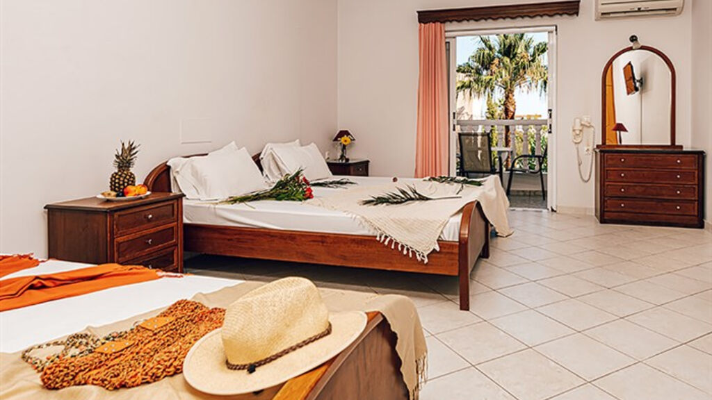 Prostorné a čistě zařízené hotelové pokoje jsou vybavené vlastním sociálním zařízením s WC, klimatizací, lednicí, trezorem, vybavených kuchyňským koutem, ručníky a balkonem nebo terasou. Pokoje mají překrásný výhled jak na moře, tak na hory, dle aktuální volné dostupnosti.
