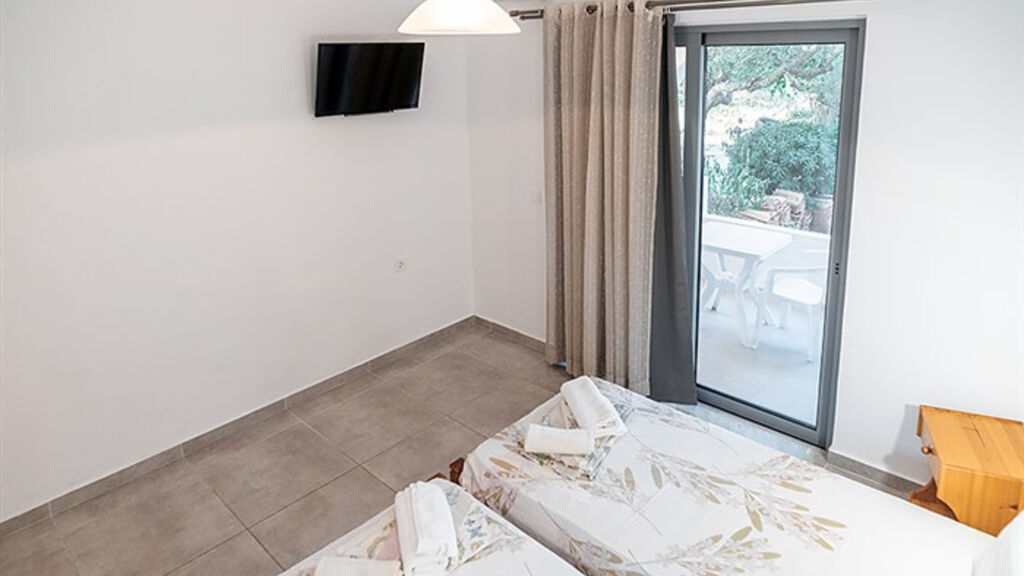 Půvabná jednopatrová vilka umístěná ve stínu a klidu olivového hájku leží pouhých 80 m od písečné pláže. O studia se pečlivě starají majitelé, kteří Vás zahrnou pravou řeckou pohostinností, na rodinnou atmosféru tohoto ubytování budete vzpomínat ještě dlouho po návratu z dovolené. Vzdálenost od živého centra Tsilivi je 600 m.