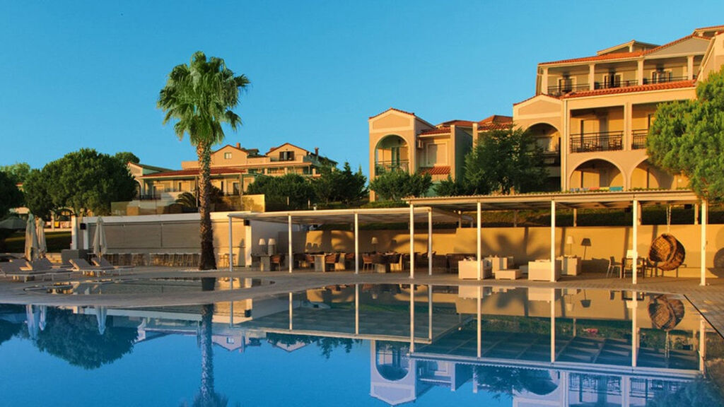 Hotelový komplex s vynikající úrovní služeb, vhodný i pro velmi náročné klienty, leží přímo u vlastní písčité pláže s pozvolným vstupem do moře a nádherně čistou vodou. Nedaleko jsou také nejkrásnější pláže ostrova Gerakas a St. Nicholas.