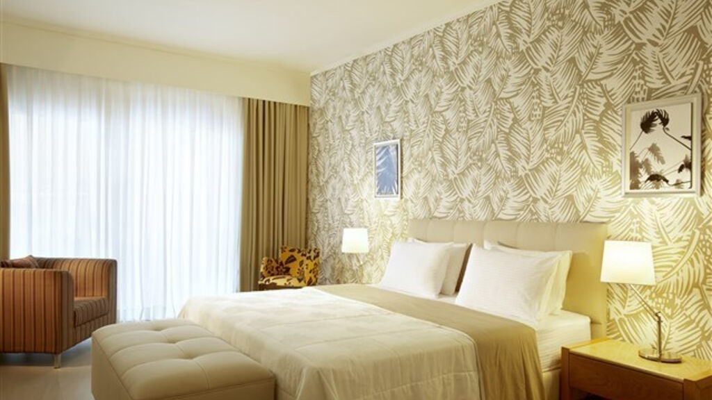 Deluxe Dvoulůžkový pokoj výhled na moře Interiér 25 – 35 m², hlavní nebo boční budova, plážové osušky, balkón nebo terasa s výhledem na moře. Max.obsazenost 2 osoby.Deluxe Junior suita výhled na moře Interiér 40 – 45 m², hlavní nebo boční budova, plážové osušky, koupací pláště, pantofle, balkón nebo terasa. Max.obsazenost 2 dospělé osoby a 1 dítě.