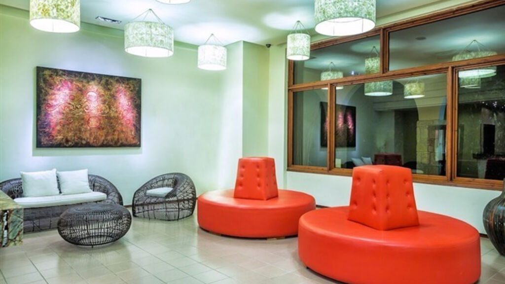 snídaně formou bufetu (7.30-10.00h.) dopolední snack (10.30-13.00h.) oběd formou bufetu nebo servírovaného menu (13.00-14.30h.) odpolední snack, zmrzlina pro děti (15.30-17.30h.) káva/čaj (16.30-18.30h.) večeř formou bufetu (19.00-21.00h.) místní i mezinárodní nealkoholické nápoje, káva/čaj, pivo, víno, Ouzo (10.00-24.00h.) alkholické nápoje, vodka, gin, rum, whiskey, brandy a koktejly (20.00-24.00h.)