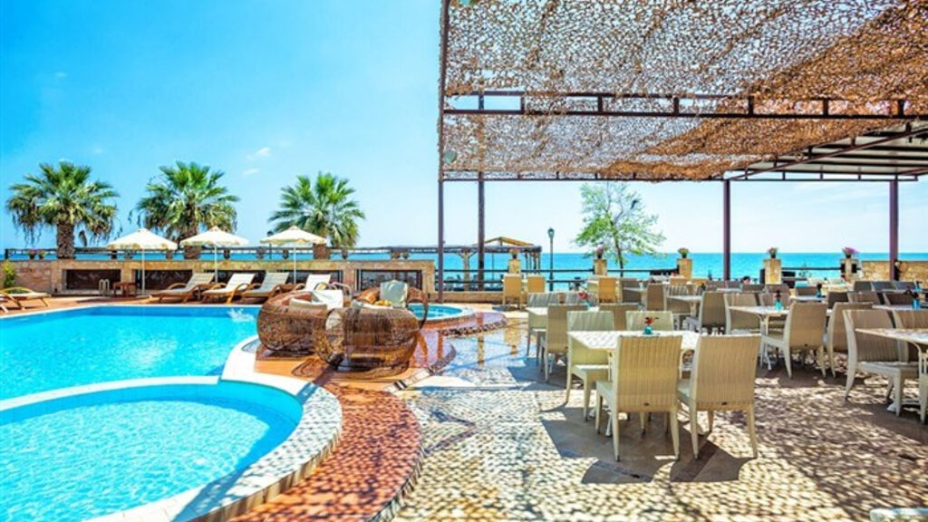 Pláž:U hotelu písečnooblázková pláž s pozvolným vstupem do moře (místy u vstupu do moře kameny, doporučujeme boty do vody) přístupná přes místní promenádu a po několika schodech. Lehátka a slunečníky zdarma.