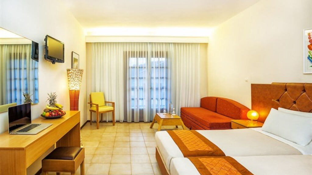 Vybavení pokojů:Dvoulůžkový pokoj, Economy: koupelna/WC (vyoušeč vlasů), klimatizace, TV/sat., lednička, trezor, pokoje se nachází v přízemí a suterénu.