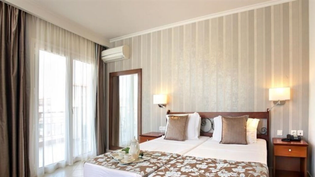 Dvoulůžkové pokoje pro 2 osoby s možností dvou přistýlek. Každý pokoj má vlastní sociální zařízení, chladničku, televizi, telefon, rychlovarnou konvici (hotelový pokoj), klimatizaci (na objednávku za příplatekcca 7 €/noc). Vyšší kategorie dvoulůžkových pokojů možné zajistit na poptání za příplatek (rozdíl v ceně cca 6000/CZK/osoba. Všechny pokoje mají balkón nebo terasu. Standardní pokoje jsou umístěny od suterénu po první patro.