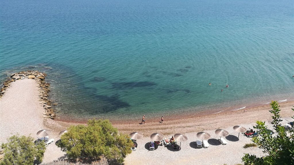 Pláž:Písečná pláž s oblázky a pozvolným vstupem do moře přímo pod hotelem, na dně hrubší písek. Přístup na pláž po schodech nebo po pozvolna se svažující cestě. Lehátka a slunečníky na pláži zdarma, plážové osušky za poplatek. Bar na pláži za poplatek.
