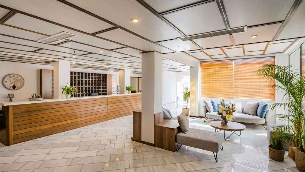 Vybavení hotelu:93 pokojů, 4 budovy, vstupní hala s recepcí, výtah v hlavní budově, trezor na recepci za poplatek, restaurace, zahradní restaurace, obchod se suvenýry, taverna, bazén s lehátky a slunečníky zdarma, bar, dětský bazén, tenisový kurt, baskotbalové hřiště, volejbalové hřiště, dětské hřiště, půjčovna kol, parkoviště