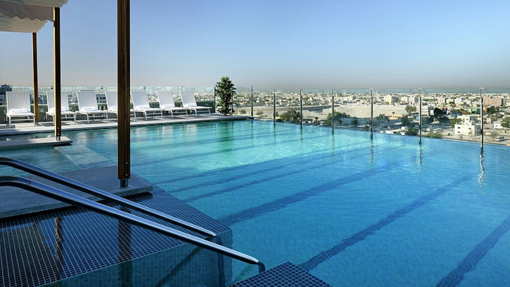 Vstupní hala s recepcí, 4 restaurace (mezinárodní, arabská, indická, italská), 2 bary, noční klub, konferenční místnosti, bazén na střeše s odděleným dětským bazénkem, bar u bazénu.