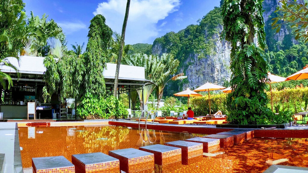 Hotel dekorovaný v tropickém stylu se nachází uprostřed krásné přírody s krásným panoramatickým výhledem na vápencovou horu, nedaleko centra Ao Nang.