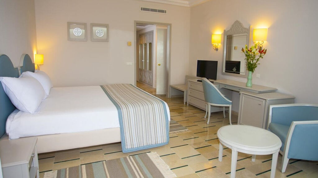 Velmi dobře udržovaný, elegantní hotel mezinárodního řetězce Iberostar se nachází přímo na krásné písčité pláži v oblasti Hammamet Yasmine, kousek od yachtového přístavu a promenády lemované obchůdky, kavárnami a restauracemi. Kousek od hotelu se také nachází zábavní park Carthageland. Historické centrum Hammamet je vzdáleno 12 kilometrů, letiště v Monastiru 95 kilometrů. PLÁŽ Široká, písčitá pláž s jemným pískem a pozvolným vstupem do moře se nachází přímo u hotelu. Lehátka, slunečníky, matrace. Plážové osušky za depozit. UBYTOVÁNÍ Standardní dvoulůžkové pokoje basic jsou vybaveny centrální klimatizací (dle sezony), ledničkou, koupelnou s vanou a oddělenou toaletou, fénem, telefonem, SAT / TV, trezorem, balkonem nebo terasou. Za příplatek standardní pokoje s výhledem do zahrady - možnost jedné přistýlky Na vyžádání prostorné rodinné pokoje. STRAVOVÁNÍ ALL INCLUSIVE - snídaně, obědy a večeře formou bufetu, pozdní kontinentální snídaně, lehký snack během dne, káva a zákusky, půlnoční snack, možnost využití a la carte restaurace (nutná rezervace), tematické večeře, neomezené množství vybraných místních, rozlévaných alkoholických a nealkoholických nápojů 10:00 – 24:00 hodin, dle otevírací doby barů. VYBAVENÍ Vstupní hala s recepcí, hlavní restaurace, a la carte restaurace (italská), hlavní bar, baru u bazénu, maurská kavárna, obchod se suvenýry, maurská kavárna, konferenční místnost, bazén, vnitřní bazén, dětský bazén, WiFi v celém areálu hotelu. AKTIVITY Animační programy pro děti i dospělé během dne, večerní programy, miniklub, dětské hřiště, tenisový kurt (osvětlení a vybavení za poplatek), plážový volejbal, lukostřelba, šipky, stolní tenis, pétanque, fitness, nemotorizované vodní sporty, za poplatek - SPA centrum, sauna, wellness, kulečník, motorizované vodní sporty.