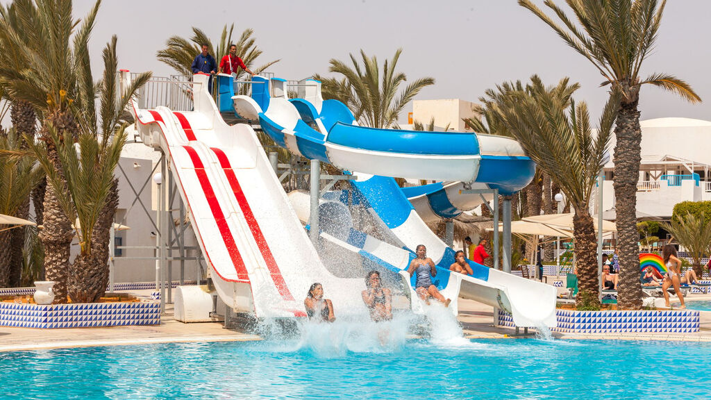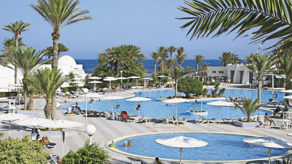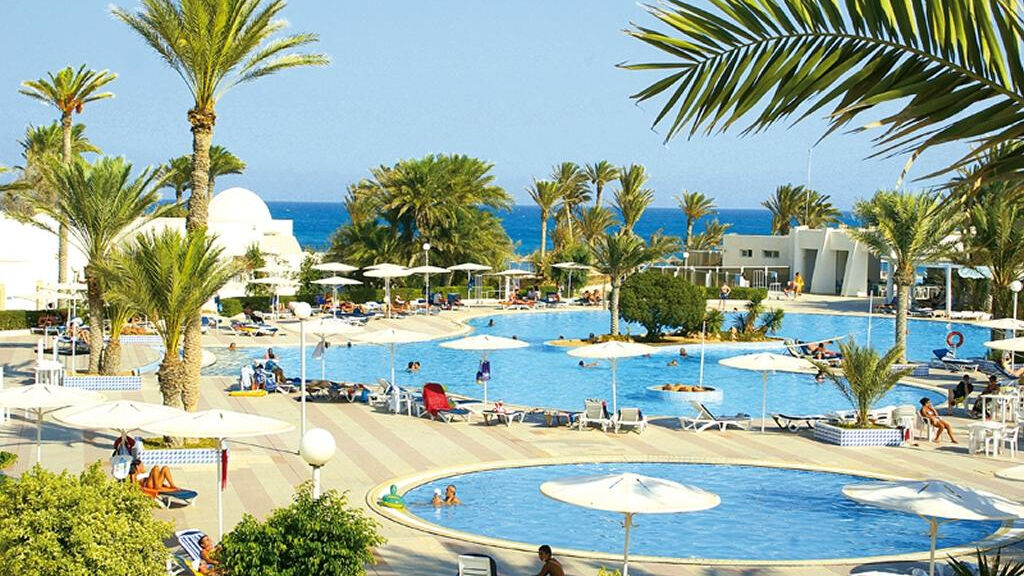 Poloha hotelu:Rozlehlý komplex v udržované zahradě v oblasti Aghir přímo u pláže. Hotel patří mezi nejoblíbenější na Djerbě díky svému typickému stylu, udržovanému areálu a vyhlášenému animačnímu programu.