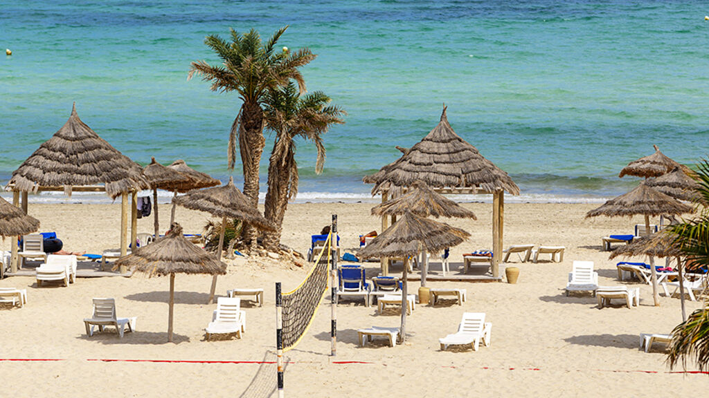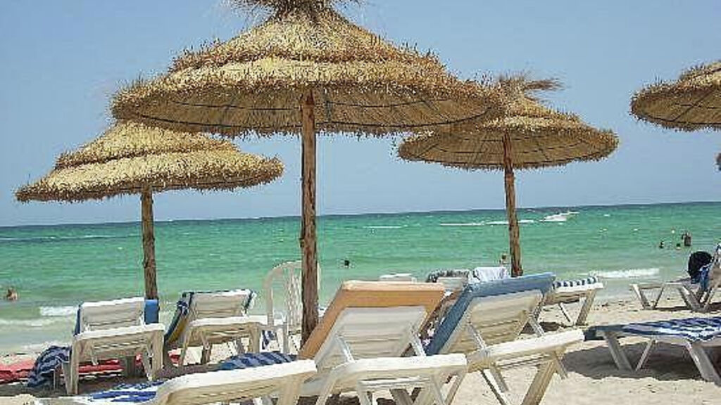 Lehátka a slunečníky zdarma, plážové osušky za poplatek cca 15 TND/týden