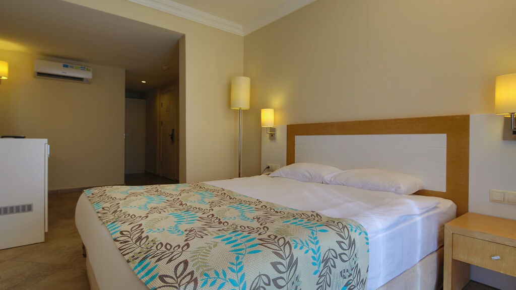 2 třípatrové budovy, 24h recepce, lobby, hlavní restaurace, 3 a la carte restaurace (turecká, italská, rybí - 1x za pobyt zdarma), několik barů včetně baru na pláži, u bazénu a disco baru, 3 bazény, dětský bazén, vodní skluzavky, WiFi zdarma.