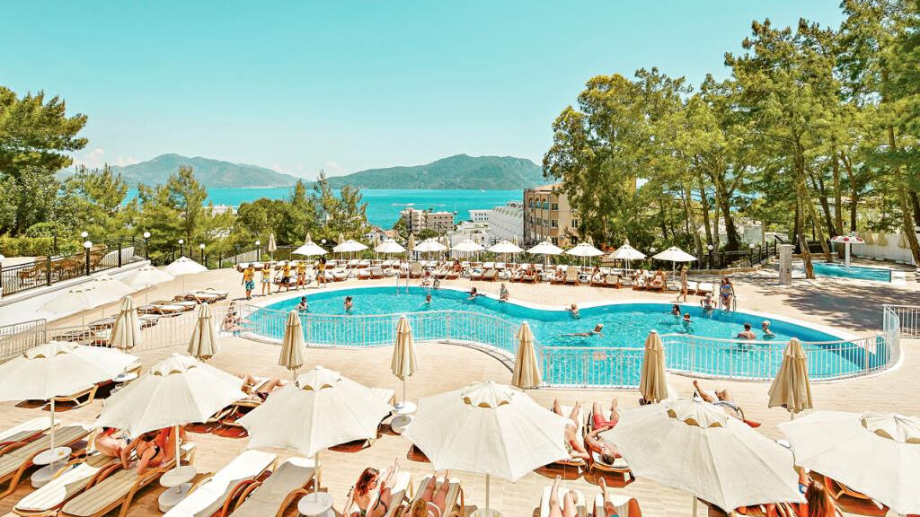 Základní informace: Turecko / Marmaris. Prázdninový komplex tvořený bungalovy se nachází v kopci s borovým hájem a skýtá krásný výhled na oblíbené letovisko a tyrkysové moře. Hosté mohou využít pláž včetně stánku s občerstvením v sesterském hotelu Ideal Prime Beach, vzdáleném asi 400 metrů. Hotel nabízí celkem 202 účelně zařízených pokojů, miniklub a skluzavky pro děti. Vzhledem k poloze a množství schodů nedoporučujeme osobám s pohybovými obtížemi. Na vyžádání lze zajistit ubytování také v prostornějších rodinných pokojích.