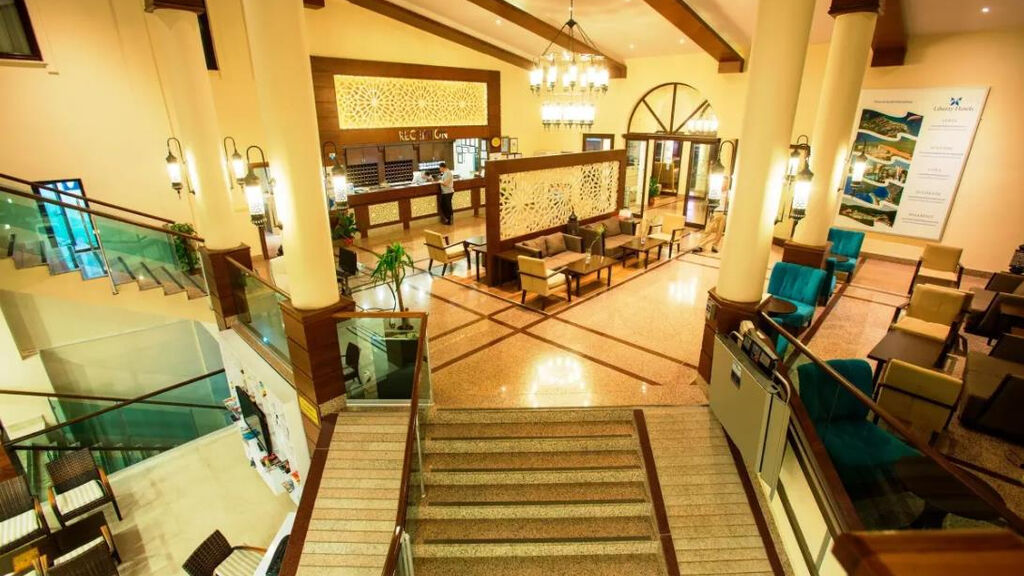 Vybavení hotelu:203 pokojů umístěných v několika budovách areálu hotelu, vstupní hala s recepcí, hlavní restaurace, 2 á la carte restaurace (nutná rezervace, za poplatek, mezinárodní, středomořská), snack bary, bary, SPA centrum, půjčovna aut, lékař, směnárna, prádelna, knihovna, 2 bazény, dětský bazén, terasa na slunění, lehátka, slunečníky a osušky zdarma.