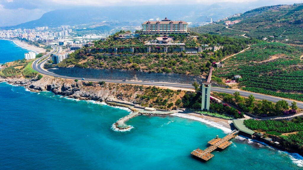 5 km od města Mahmutlar, 17 km od města Alanya, 155 km od mezinárodního letiště Antalya