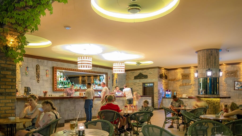 Spa centrum, turecké lázně, sauna, jacuzzi, salon krásy, masáže, fitness centrum, aerobik, tenisový kurt, stolní tenis, biliard, basketbal, mini fotbal, lukostřelba, šipky, herní místnost, vodní sporty, animační program, živá hudba, diskotéka
