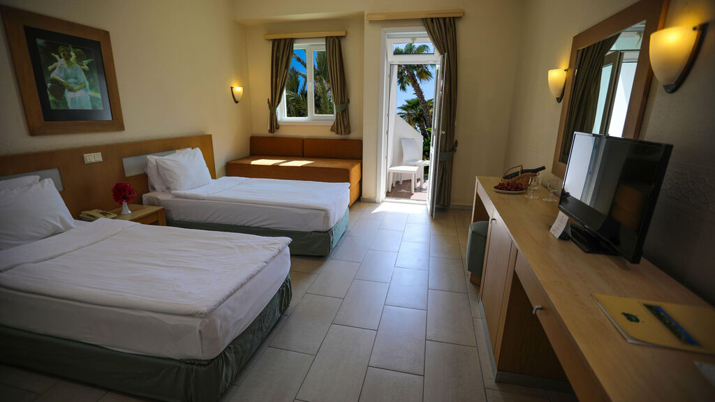 Vybavení pokojů:Dvoulůžkový pokoj, Club: Koupelna/WC (vysoušeč vlasů), klimatizace, TV/sat., minibar (zdarma), trezor (zdarma), set na přípravu kávy a čaje, balkon, umístěné v blocích bez výtahu v zahradě, cca 30 m2.