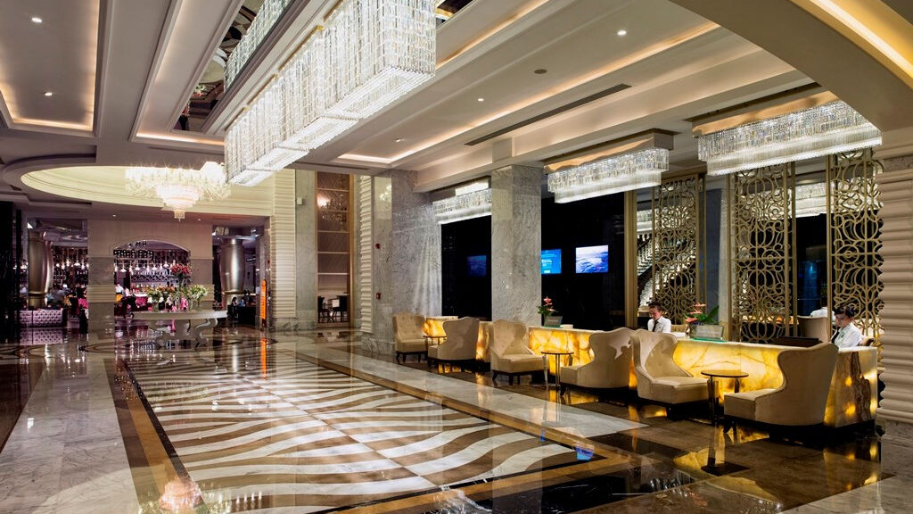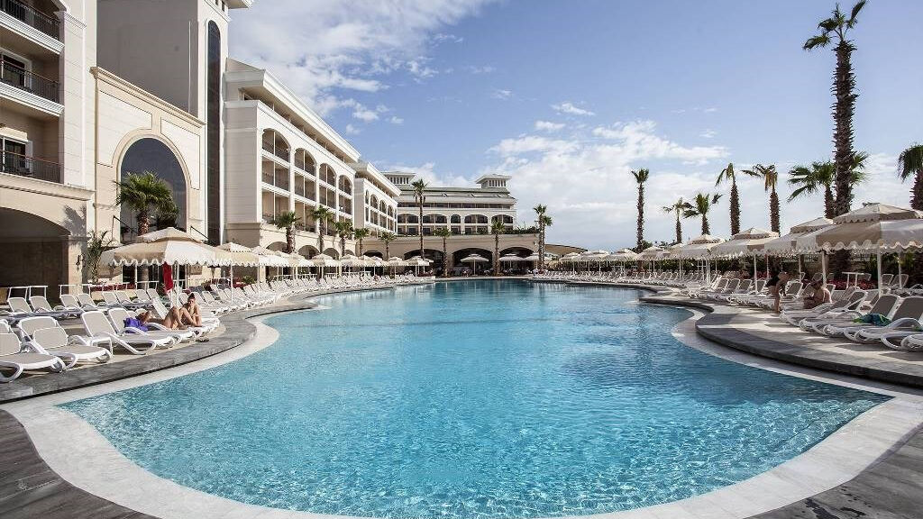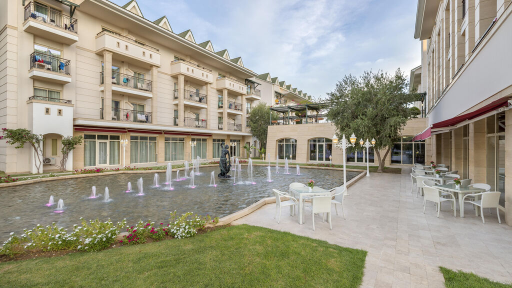 Hlavní budovy a bloky v zahradě, vstupní hala s recepcí, výtahy, hlavní restaurace, restaurace `a la carte (asijská, italská, steak house, turecká, rybí), několik barů, konferenční místnosti, nákupní arkáda, kadeřnictví. V zahradě 3 bazény, aquapark s 6 skluzavkami, brouzdalištěs atrakcemi pro nejmenší, terasa na slunění, lehátka, slunečníky a osušky zdarma.