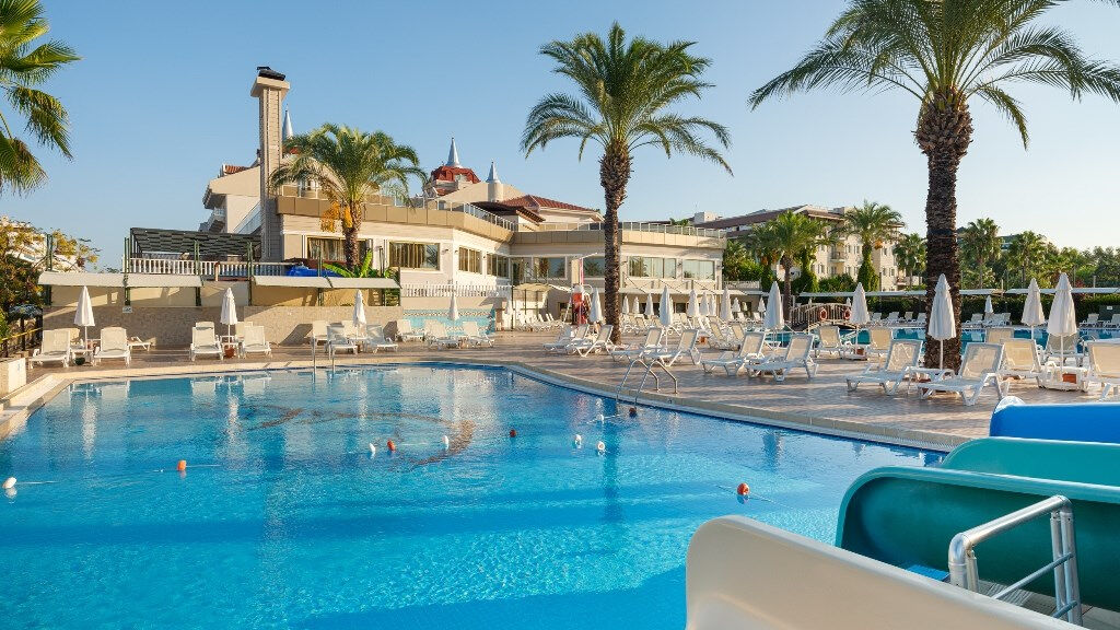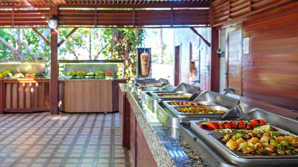Vybavení hotelu:316 pokojů, 4 budovy (5patrové), vstupní hala s recepcí, hlavní restaurace, 4 restaurace à la carte (italská, rybí, turecká, snídańová), několik barů, obchody, obchod se suvenýry, půjčovna aut, fotograf, prádelna, doktor, kadeřník, konferenční místnosti, 2 venkovní bazény, dětský bazén, skluzavky, terasa na slunění, vnitřní bazén, lehátka, slunečníky a osušky u bazénu zdarma.