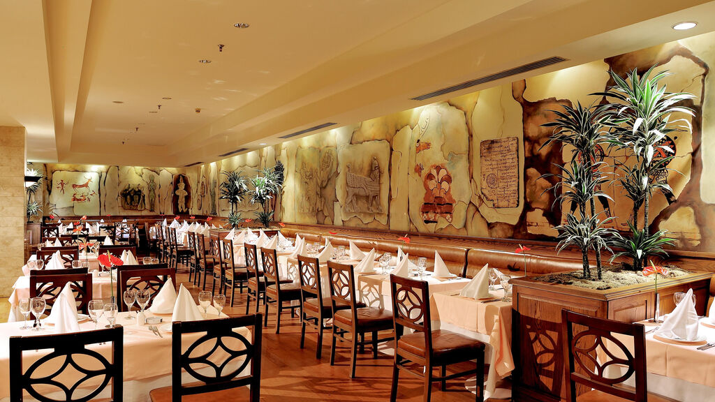 hlavní restaurace "Mosaique": druhy kuchyně: mezinárodní, regionální, středomořská, turecká, grilovaná jídla, baby menu, dietní jídla, bezlepková jídla, dětský formou bufetu, dětské menu, lehká jídla, sezónní jídla, vegetariánská jídla, zdravá jídla jídla, formou bufetu, show cooking, v ceně, duben - říjen, denně 06:30 - 10:30, 12:30 - 14:30 a 19:00 - 21:30, s klimatizací, s terasou, kuřácký kout, vys. stropy vysoké židličky pro děti, nutný vhodný oděv
