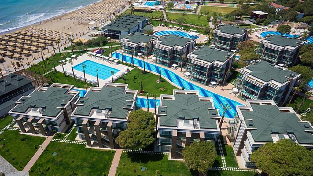 Hlavní budova, komplex bungalovů v zahradě a bloky se sdíleným bazénem.Vstupní hala s recepcí, hlavní restaurace, 3 restaurace `a la carte (turecká, rybí, čínská), několik barů, kavárna, obchodní arkáda, wellness centrum, salon krásy,kadeřnictví, konferenční centrum. Venku několik bazénů, aquapark s 5 skluzavkami, terasa s lehátky, slunečníky a osuškami zdarma.