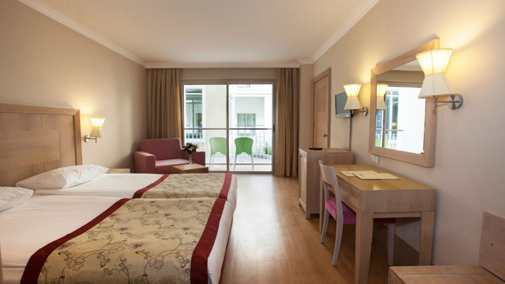 Moderní dvoulůžkové pokoje s možností až 2 přistýlek, klimatizace, minilednice, TV/ SAT, telefon, sejf, fén, koupelna a balkon. Na vyžádání rodinné pokoje s oddělenými ložnicemi až pro 5 osob.