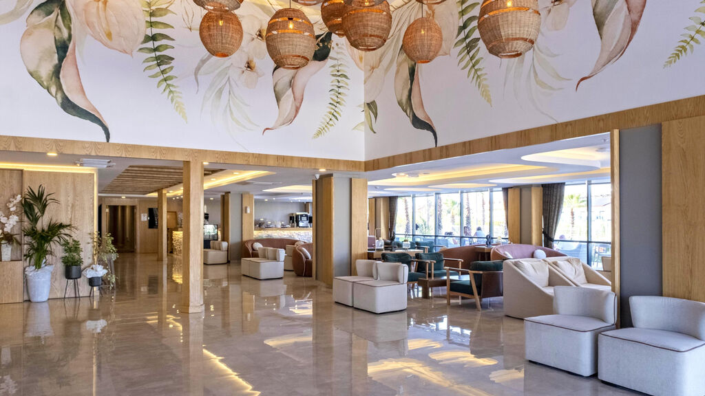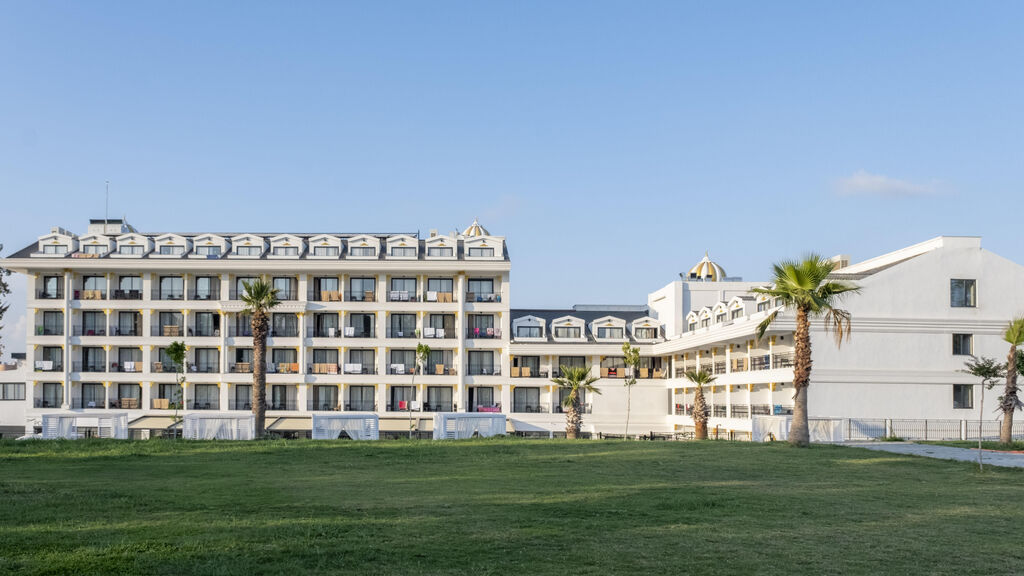 Vybavení hotelu:Pokoje jsou umístěné ve dvou hlavních budovách (5patrová a 3patrová), vstupní hala s recepcí, hlavní restaurace, á la carte restaurace (středomořská), bary, snack bar, prádelna, obchody, SPA centrum, konferenční místnost, lékař, kadeřník, 2 bazény, dětský bazén, skluzavky, vnitřní bazén, terasa na slunění, lehátka, slunečníky a osušky zdarma.