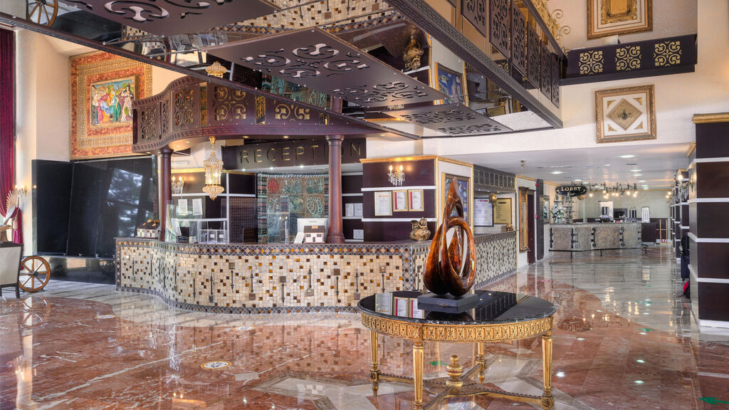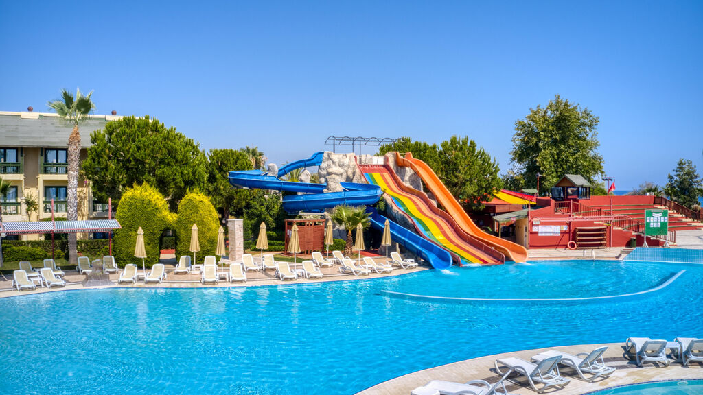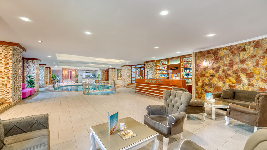 Vybavení hotelu:Vstupní hala s recepcí, lobby, hlavní restaurace, 2 a la carte restaurace (rybí a turecká), 4 bary, aquapark, hlavní bazén (lehátka, slunečníky a osušky zdarma), vnitřní bazén, dětský bazén, 2 konferenční sály, různá sportoviště, fitness, diskotéka, prádelna.