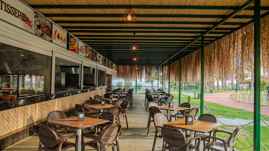 Pláž:Písčitá, místy kamenitá plata, přímo u hotelu. Pláž má vlastní molo. Lehátka, slunečníky a plážové osušky zdarma. Plážový bar v rámci All Inclusive.