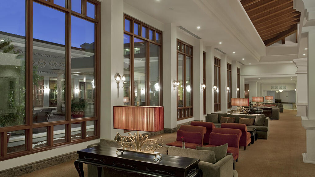 Hlavní budova (2 bloky) a vedlejší budova s rodinnými pokoji. Vstupní hala s recepcí, výtahy, hlavní restaurace, restaurace `a la carte (turecká, rybí, italská a francouzská), několik barů, obchodní arkáda, kadeřnictví. V zahradě 2 bazény (jeden z nich se skluzavkami), terasa na slunění s lehátky, slunečníky a osuškami zdarma.