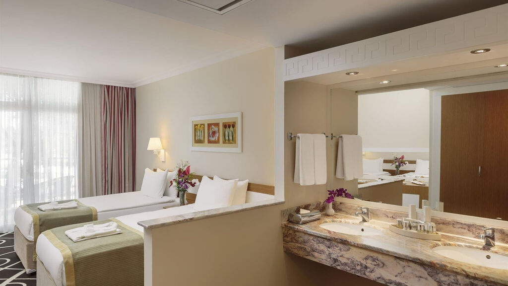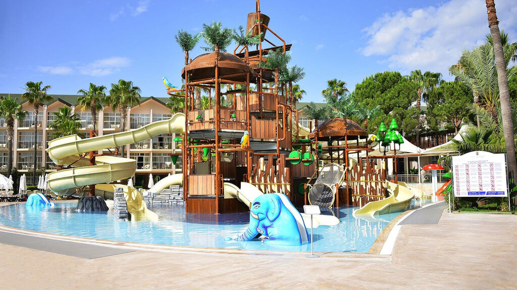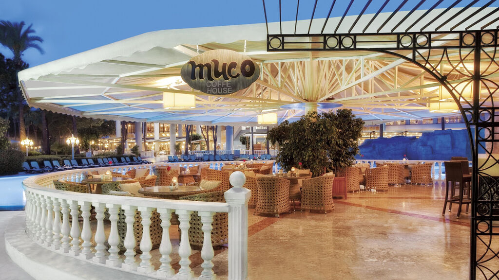Vybavení hotelu:816 pokojů, vstupní hala s 24 h recepcí, hlavní restaurace s venkovní terasou a dětským bufetem, 4 a la carte restaurace (italská, turecká, rybí, japonská - za poplatek), 2 vnitřní bazény (pro dospělé a pro děti), 7 bazénů (1 pouze pro dospělé 16+, 2 dětské se skluzavkami), terasy na opalování (lehátka, slunečníky a osušky zdarma), pekárna, 2 patisserie, kavárna, disco bar, 8 barů, konferenční místnosti, obchody, zahrada, půjčovna aut, parkoviště.