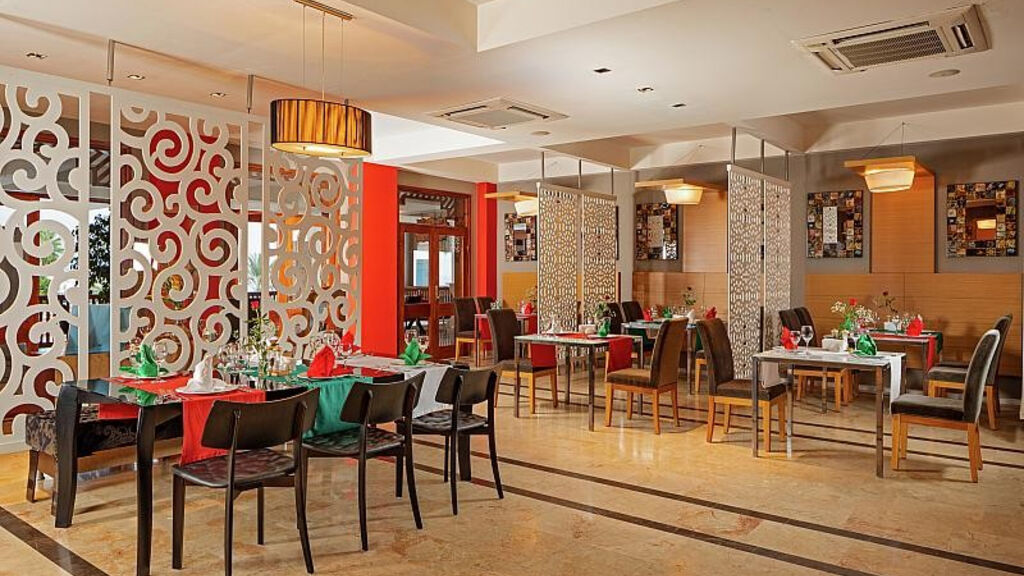 - Bungalov, Club: Koupelna/WC (vysoušeč vlasů), centrální klimatizace, TV/sat., minibar (zdarma), trezor (zdarma), telefon s přímým vytáčením, v bungalovech v zahradě v klubové části.